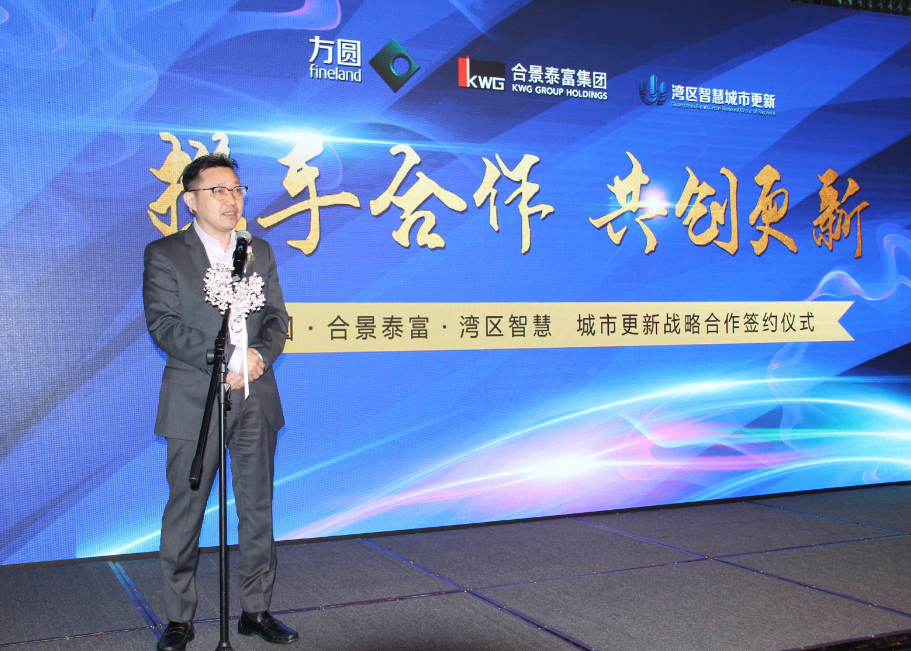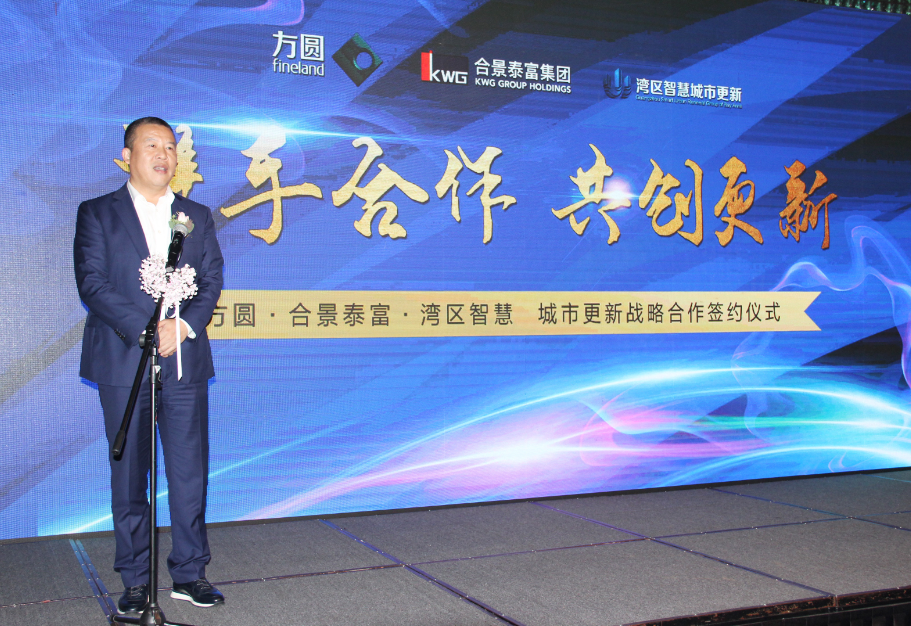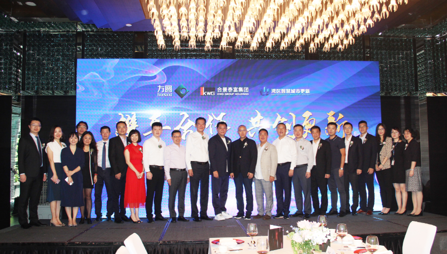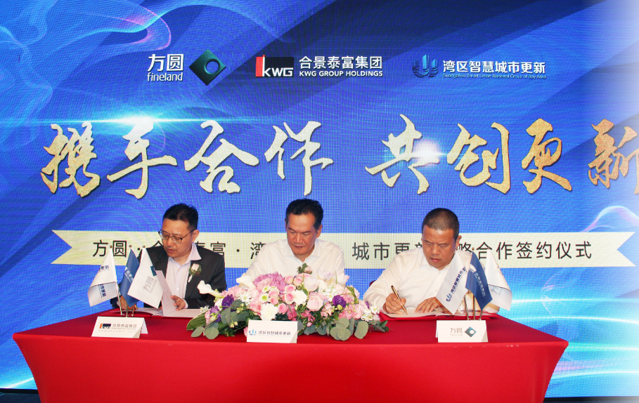 2019年8月8日,“方圆 · 合景泰富 · 湾区智慧”城市更新战略合作框架协议签约仪式在广州W酒店举行,合景泰富集团董事局主席孔健岷、地产首席执行官蔡风佳、人力资源副总裁陈怀宇、城市更新集团总经理麦丽华;方圆集团主席方明、总裁徐珺、董事赖明;湾区智慧城市更新集团董事长黄文波等嘉宾出席签约仪式。