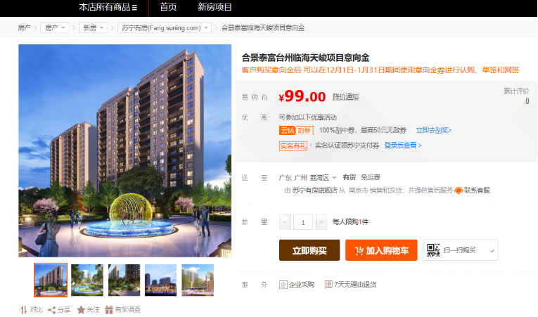 12月5日至12日,合景泰富与苏宁易购进行合作,推出“易拍即合·High 个购”活动,期间合景泰富集团将在苏宁易购平台每天限量推出特价房源供客户抢购。