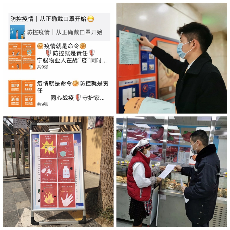 宁骏物业将持续通过官方微信公众号、业主微信群、社区通知公告栏、联合街道防疫部门宣传等渠道,积极配合当地政府传达疫情相关的即时信息,向业主推送正规、有效的疫情报道及防护知识。