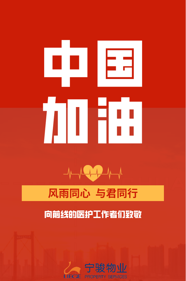 我们虽然不是“白衣天使”,但我们想成为守护业主健康的“防疫先锋”,因为我们清楚知道,在我们身后,是成千上万个家庭的健康和幸福。中国加油,宁骏加油!