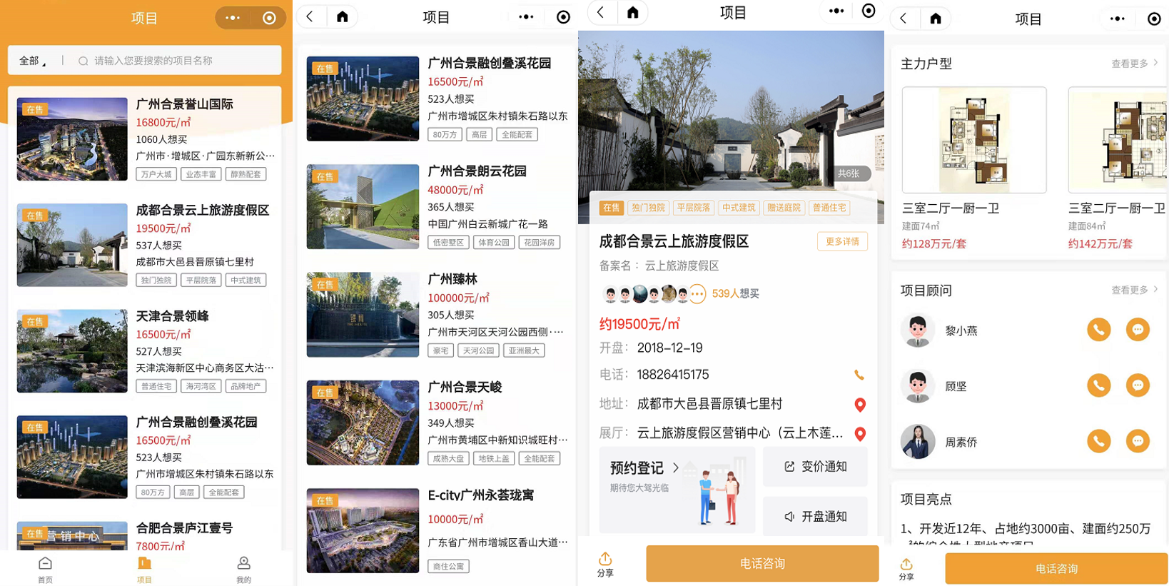 通过互联网大数据技术,“合景云选家”汇聚了合景泰富集团全国近40城逾150个项目的最新信息,用户通过关注微信小程序“合景云选家”,即可在线了解合景泰富集团旗下所有房源的动态、资讯、户型、价格等,更有置业顾问提供在线咨询答疑,为客户实现看房、选房、意向登记等操作在线即可轻松完成。