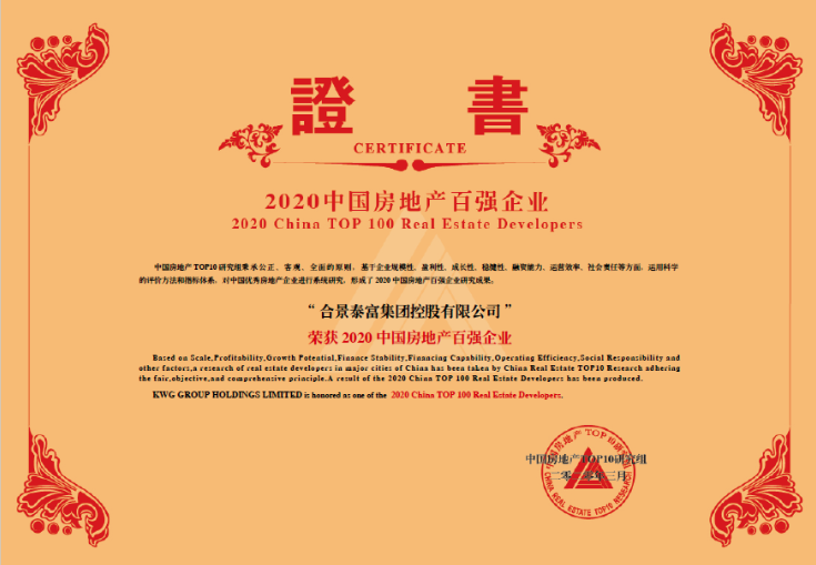 合景泰富集团入选“2020年中国房地产百强企业”第30位