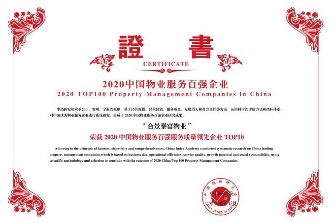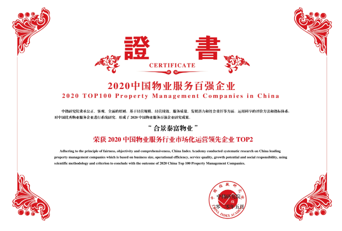 而在同日举行的由中国指数研究院、中国房地产TOP10研究组主办的“2020中国物业服务百强企业研究成果发布会暨第十三届中国物业服务百强企业家峰会”上,合景泰富物业亦凭借显著跃升的管理规模和经营效益、高成长性的业务发展、卓越的服务体系构建以及高溢价的品牌价值,荣登2020中国物业服务百强企业第十七位,更揽获2020中国物业服务行业市场化运营领先企业第二名及2020中国物业服务百强质量领先企业十强两项重磅大奖。