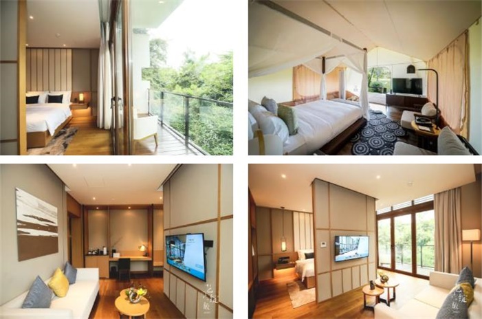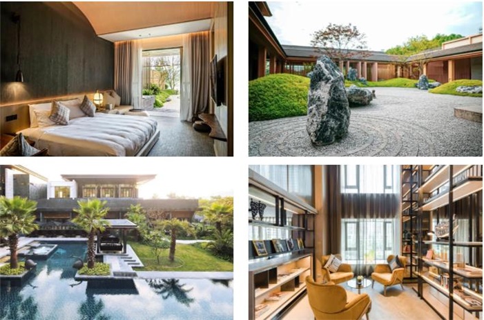在高端度假酒店系列,木莲庄则强调因地制宜,提供休闲度假的多种体验。以本次花都木莲庄二期发布为例,项目融合得天独厚的自然环境,匠心独运地带来“庭院”、“野奢”等不同风格的全新旅居体验——秋山居的庭院风格偏向清雅幽静,室内静谧简约的设计与公共空间的园林景致相互呼应,一步一景全然让人领略诗意般的园林艺术生活。