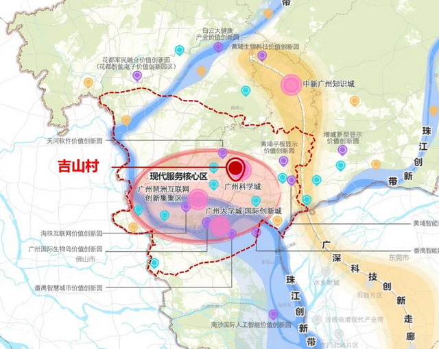 在天河智谷、智慧城、科学城、人工智能与数字经济试验区等多个重要产业平台的环绕下,吉山村改造项目坐拥广州东产业集群资源加持。同时,省级名校、三甲医院、天河儿童公园、地铁站等全维度优质城市配套,亦为吉山村服务周边产业平台、打造产城配套功能提供了天然优势。未来,吉山村板块可作为天河智谷片区的有效组成部分,以产业集群生活服务配套和产业功能落位衔接为导向,支撑周边产业平台持续发展,区位价值潜力巨大。
