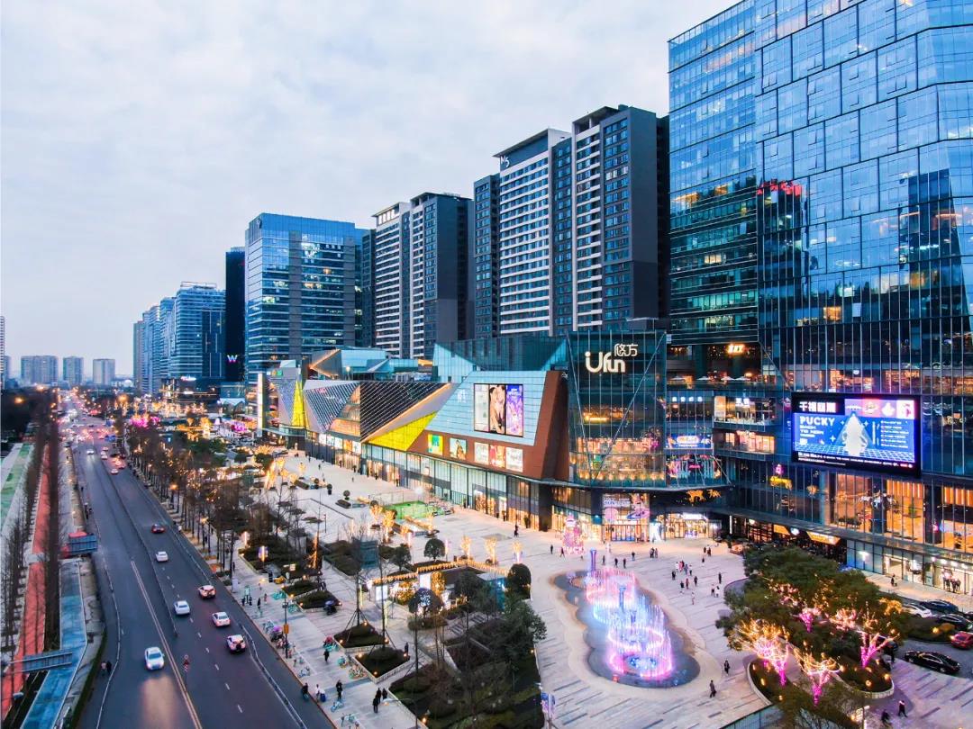成都交子大道一公里,含高端住宅誉峰,购物中心摩方、悠方,写字楼ICP环汇广场,W酒店和自有品牌木莲庄酒店、MUSTEL,U8酒吧街