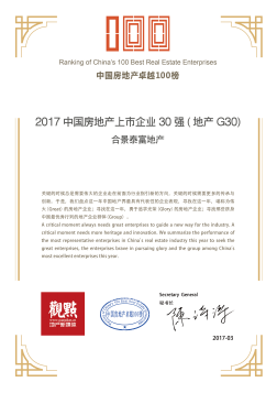 The 2017 Ranking of China’s 100 Best Real Estate Enterprises and the 2017 Top 30 Real Estate Listed Companies (Property G30), which is reported to be convened by Guandian Property once every year in conjunction with various mainstream media, research institutions, property developers, investment institutions, financial and investment banks, and professional bodies, aims to identify the role model, business group, and products of the year. The assessment system, comprised of operating, financial, branding, and management indicators of an enterprise, will review and assess multidimensional aspects, including sales performance, land banks, corporate assets, profitability, branding values, contributions to communities, management models, execution efficiency, etc. Selected into the 2017 Ranking of China’s 100 Best Real Estate Enterprises, KWG has successfully earned the recognition by both the industry and the public for its comprehensive strength.