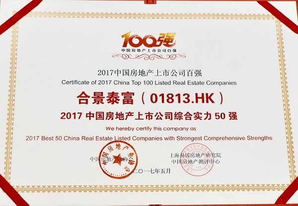 On 25 May 2017, the “2017 Conference and Summit Forum of China Real Estate Listed Companies” was jointly held by China Real Estate Association, Shanghai E-house China R&D Institute and China Real Estate Appraisal Center in Hong Kong, where leaders of related government authorities, experts and scholars in the real estate industry, representatives of renowned financial institutions and outstanding real estate enterprises attended. KWG Property (01813.HK) ranked 38th on the list of Best 50 China Real Estate Listed Companies with Strongest Comprehensive Strengths.