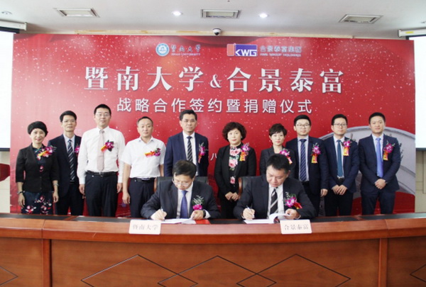 On the morning of 27 September, the “Strategic Co-operation Signing and Donation Ceremony between KWG Group and Jinan University” was held in Jinan University, a respectful centennial school recruiting foreign students and inheriting the essence of outstanding Chinese culture. Education benefits the future with today’s efforts. At the112nd anniversary for school establishment, the 60th anniversary for rebuild and the 40th anniversary for resumption, Mr. Kong Jianmin, the Chairman of the board of directors of KWG Group and the member of the school board of Jinan University, again donated RMB20 million to support the establishment and development of Jinan University.